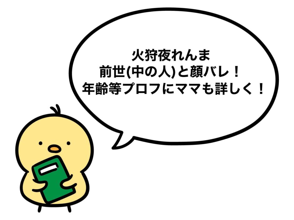 そんなアナタのために、火狩夜れんまさんの前世(中の人)と顔バレ事情、年齢等プロフもママも詳しく調査、まとめました。